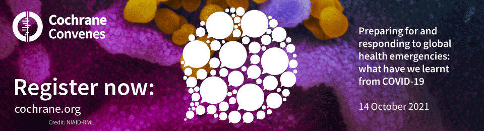 Cochrane Convenes is an online event hosted by Cochrane, sponsored by WHO, and co-organised with COVID-END (COVID-19 Evidence Network to support Decision-making).